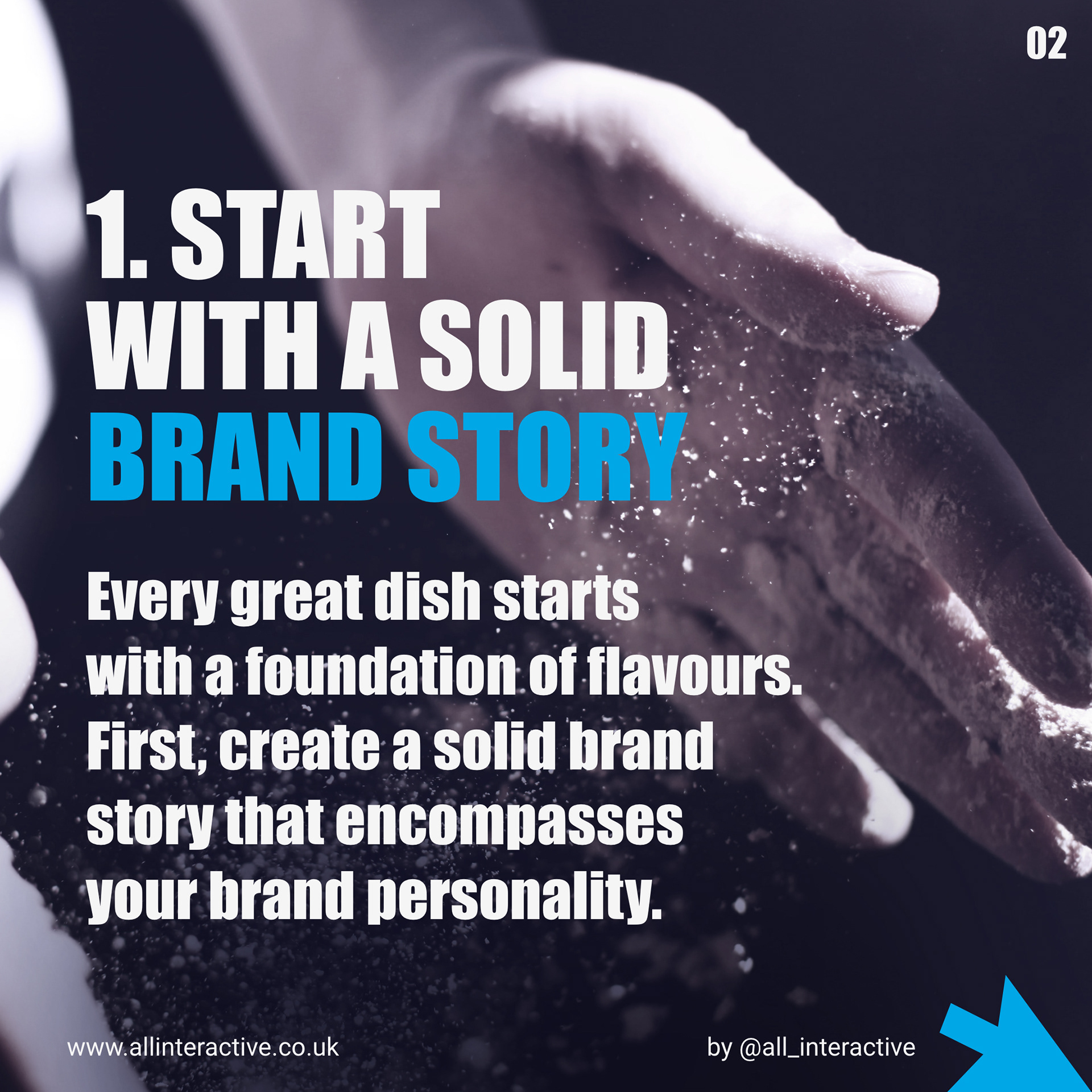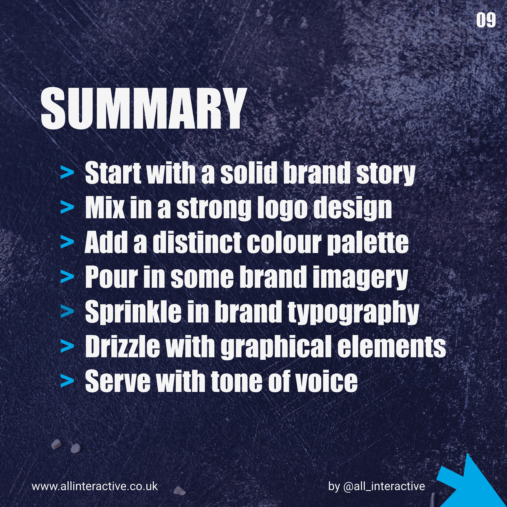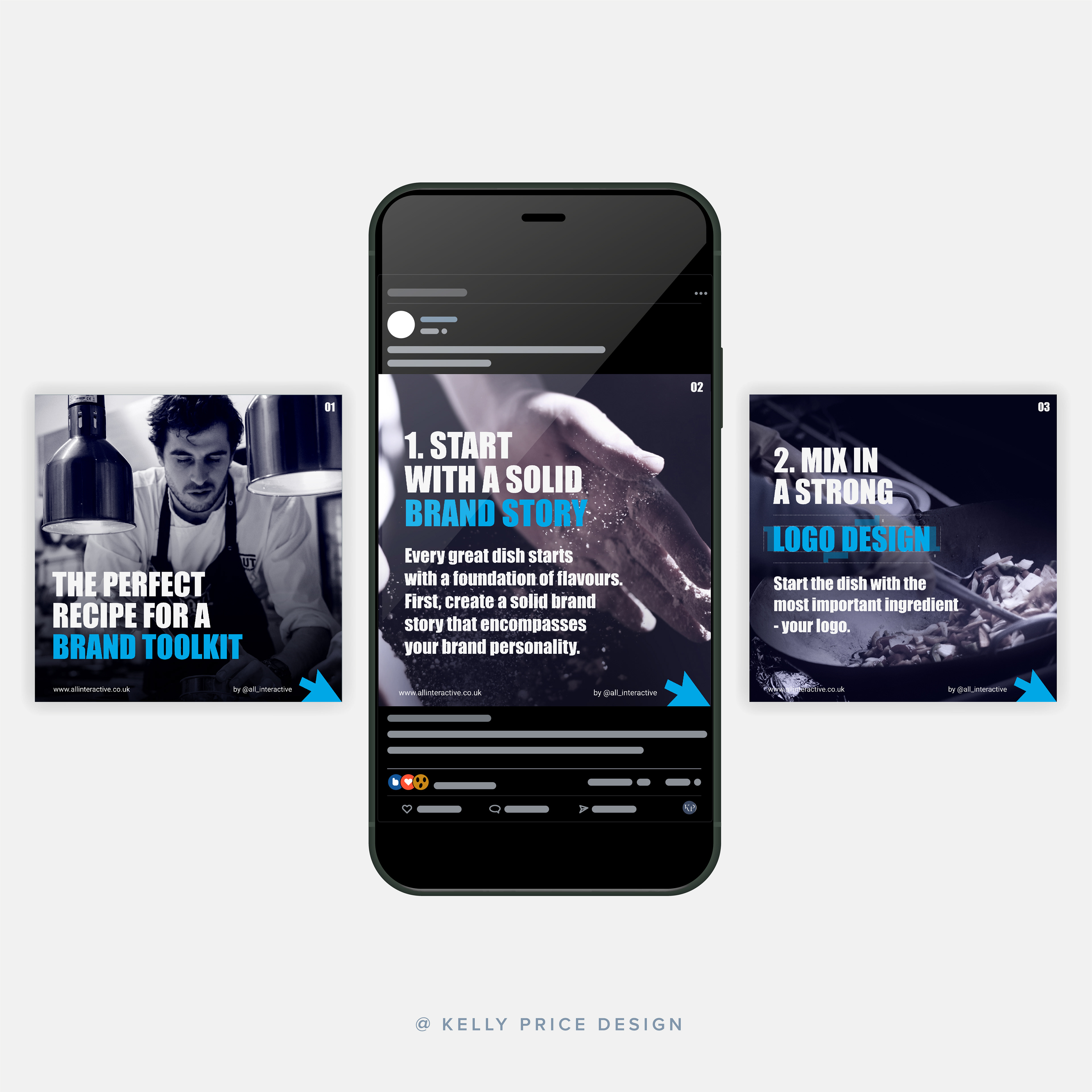 Instagram carousel design for All Interactive, a small, responsive digital agency in Hampshire looking to shout about their effective process in branding and brand toolkit design.