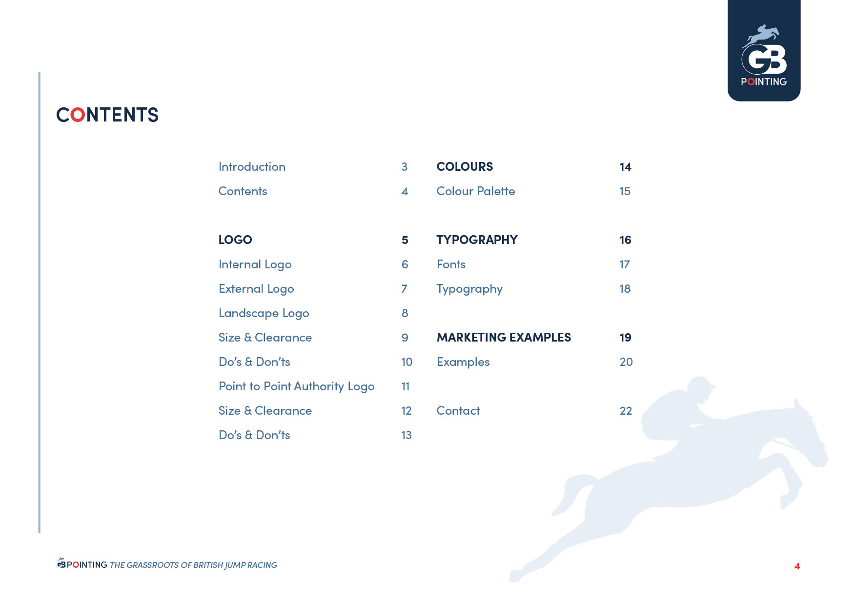 Working closely with Tiggy and Paul at The Point to Point Authority (PPA) I have developed a stand out new logo for both GB Pointing and The PPA. The PPA is the body responsible for administration, education and innovation within point-to-point racing whereas GB Pointing represents the sport as a whole at the grassroots level.