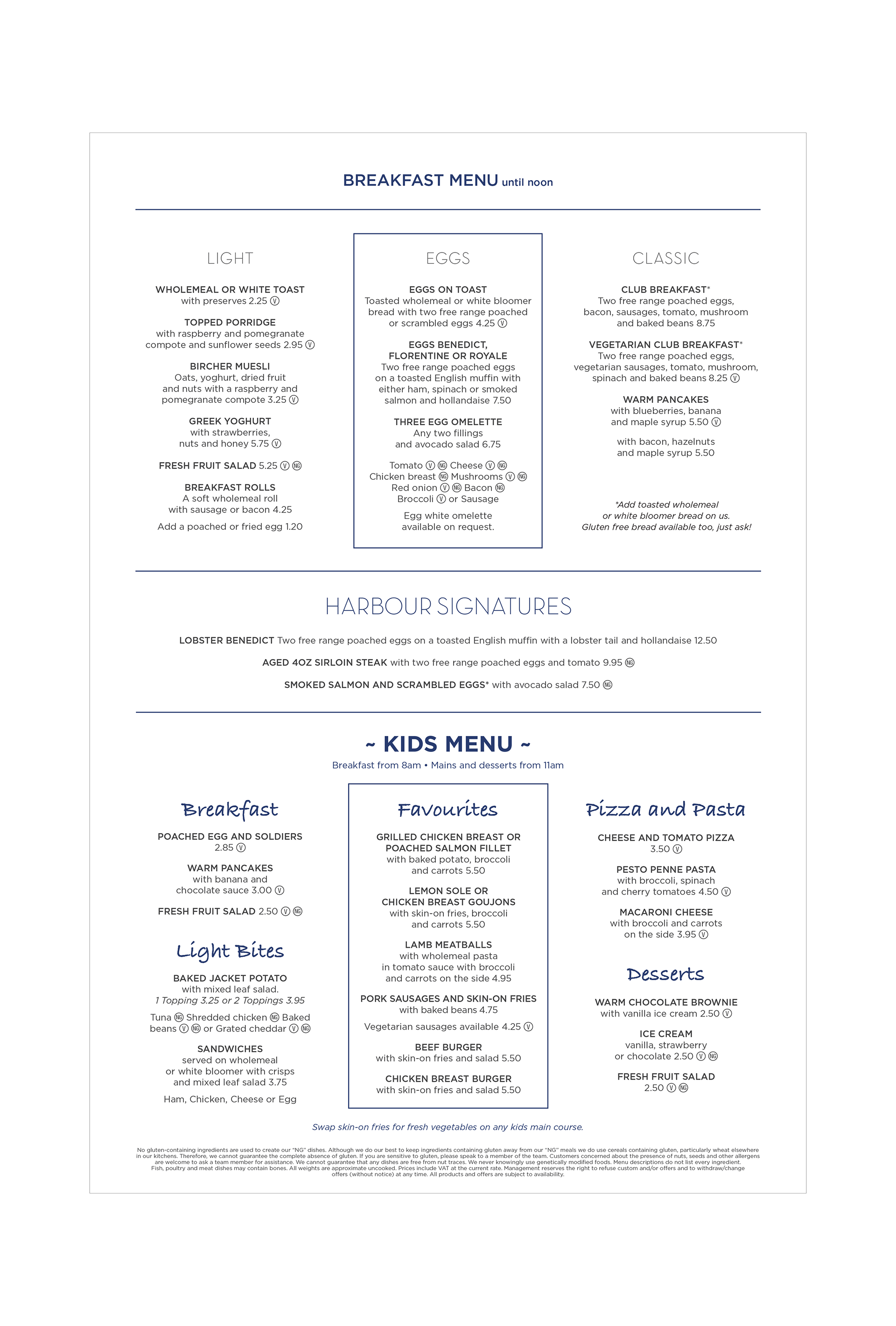 Menu design for the exclusive Harbour Club.